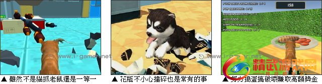 虽然每个地点都有特别任务,但有一个共通、唯一让主人开心的就是抓住老鼠,利用小狗矫健的身手逮住那些恼人的家伙吧!除此之外,玩家需要让小狗做出各种捣蛋的事,无论是把超市里的商品通通推倒或是抓坏家里的地毯、打破花瓶,总之,怎么混乱怎么来,成为破坏大王就可以赚入大量的金币唷!现在就和你的小狗一起度过这疯狂的时间吧!