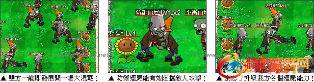 游戏操作:以滑鼠操作进行游戏,点击选择下方的僵尸放在合适的位置上进行攻击和防御。