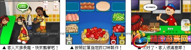 游戏操作:以滑鼠点击拖动道具食材,制作料理满足顾客的需要。