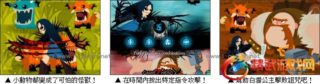 传说在森林里居住着一位漂亮的公主过着幸福的生活,但是邪恶的女巫却下了一个可怕的诅咒,让白雪公主和小动物们都变成可怕的怪兽,为了能够拯救森林里的所有生物,她决定与邪恶的女巫战斗到底。游戏中玩家将操作白雪公直行冒险,每打败一个头目都可以学会一个全新的招式喔。赶快来帮助白雪公主破除黑暗诅咒吧!
