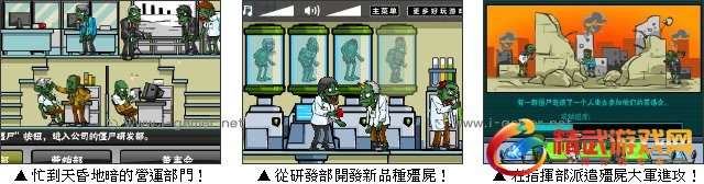 游戏操作:以滑鼠操作进行游戏,点选功能表来运营整个僵尸公司。