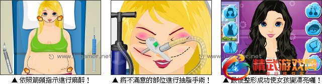 莎拉一直想变成身材曼妙的女孩,但她尝试过各种方法瘦身却都不见成效,于是她为了可以实现愿望,下定决心去整形医院,让自己可以变成一位漂亮女孩。首先依照箭头的指示替女孩麻醉,将不满意的部位进行抽脂手术,再将伤口缝起来,并擦上药膏,几天后就恢复光滑透亮的肌肤,就可以帮女孩打扮漂漂亮亮啰!