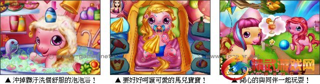 游戏操作:以滑鼠操作进行游戏,根据提示照顾马儿宝宝喔。