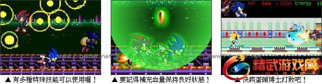 超级玛莉兄弟合击2中,音速小子是这齣电玩连续剧的主角,华丽的战斗画面,炫丽的技能是本作卖点。游戏依然是採用回合制战斗模式,第一关是蛋头博士手下,第二关是他本人,一起来体验华丽和高速节奏的战斗吧!
