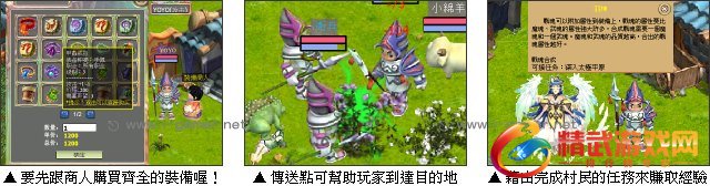 游戏操作:以滑鼠点击或WASD键控制人物移动,1~6键为快速键,~键切换快速键栏,空白键拾取地面物品。