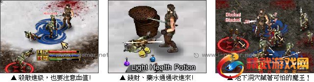 游戏操作:以滑鼠控制人物移动,左键点击攻击/拾起物品,数字键1~9使用游戏下方设置的物品。