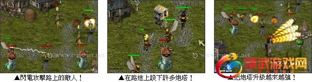 萨格奈王国守卫战是一款中世纪风格的守城游戏,要在敌人进攻的路途上设下防御砲塔。游戏中的敌人竟是一群大黄蜂,可别小看他们的威力,当等级不断的提升也就越难打败。玩家要将炮塔放置到合适的位置,赚到的钱可以将炮塔升级,让你的防御越来越强大!