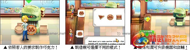疯狂巧克力商店是一款相当精緻的模拟经营游戏,游戏中的顾客比较挑剔,你要赚钱升级你的巧克力机器,制作所有种类的巧克力,将巧克力包装好,装饰精美,使顾客不停的光顾你的小店。