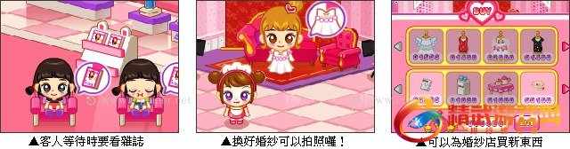 阿 Sue 开了一间新的婚纱摄影店,吸引许多女孩们来试穿拍照,客人进来后会先坐在等候区,有些客人想要看杂誌,有些客人想喝茶...等等,必须要做到做好的服务,否则客人等太久可是会生气走人的喔!接着客人会轮流试穿婚纱,穿到满意的就可以拍照啰,可以依据每天的营业额来为店里购买更多东西, 是个相当梦幻好玩的游戏唷!