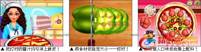 你是一名披萨狂热者吗?单纯的闷头狂吃是不是满足不了你了呢?现在就在老师的指导下,一起动手制作美味的披萨吧!为了获得可口的饼皮,玩家得先依照指示,将面粉及各种调味料一一混合,并在发酵之后用擀面棍将面团摊开,淋上由老师提供,秘制调配的酱汁!