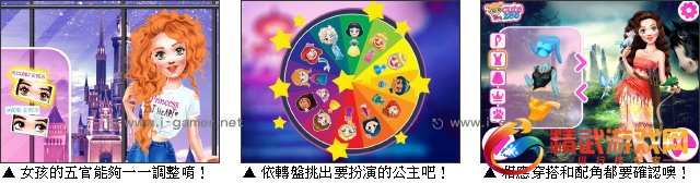 而现在,就是见证奇蹟的时刻,在使用轮盘的期间,女孩可以随意调整她的五官,让自己长得更像公主一些!而迪士尼经典的服装及发型当然也不能弄错,依照抽到的角色搭配可是一大重点唷!另外,想再更深入其境一些吗?召唤出那些卡通里的重要配角,也许能让人更有真实感呢!现在就帮助女孩,开启她的圆梦之旅吧!