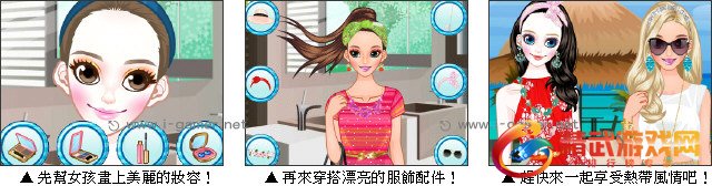为了抓住夏天的尾巴,小琪和小丽决定前往热情奔放的夏威夷,出发前我们先来帮她们打扮打扮吧。首先要帮两位女孩画上美丽妆容,接着搭配合适的服装配件就可以到夏威夷游玩啰。游戏中无论是化妆品或服饰配件都十分多元,玩家们快来一起享受热爱风情吧!