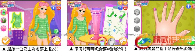 游戏操作:以滑鼠操作进行游戏,点击道具为迪士尼公主做出打扮。
