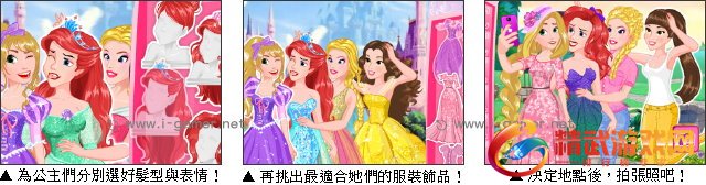 风光明媚,天气正好,迪士尼的诸位公主们相约出外踏青拍照。彼此身分地位相仿,自然免不了互相比较一下谁在镜头前更美丽?分别帮她们选好发型、表情,穿上适合的衣服与饰物,让四朵花尽情争奇斗艳一番,为这个美好的日子更添一分色彩吧!