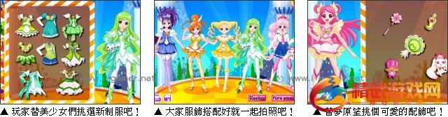 光之美少女2推出啰~可爱的光之美少女要来改变不同的造型了,快来为她们量身订做出最特别的风格吧。游戏中有各式各样的素材可以选择搭配,不论是发型及服装饰品,都能任意为美少女换上玩家最喜爱的样子。多样式的变化让你发挥无限想像,现在我们就到游戏中为这些可爱的女孩们好好的打扮一下吧!