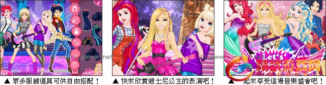 迪士尼公主们经过一番努力,终于在音乐界闯出知名度,现在她们要举办人生首场演唱会,随着时间一分一秒的经过,到了换装的时刻,平时都沉溺于音乐世界的公主们,都忘记衣服要如何搭配了,他们究竟要穿哪一套洋装?梳成怎样的发型?配戴哪种饰品?玩家们快来帮助她们打扮,让他们今晚的演出顺利进行下去吧!