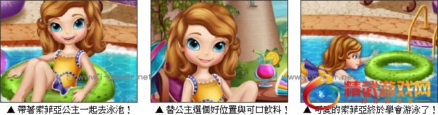 索菲亚是一个人见人爱的小公主,现在天气热了,公主也想要去找个凉爽的地方避避暑。所以这次索菲亚公主来到游泳池玩耍,顺便学习一些游泳的招式,但是公主第一次练习游泳,所以有些生疏,现在就请玩家们来帮帮公主学游泳吧!