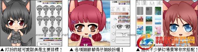 游戏操作:以滑鼠操作进行游戏,点击物品给人物使用,服装给人物换妆打扮。