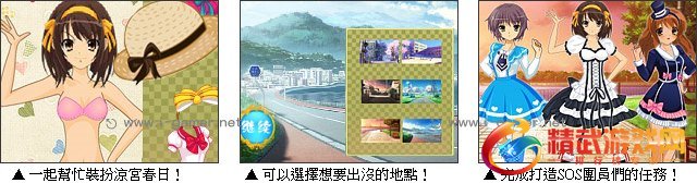 超人气轻小说「凉宫春日的忧郁」,故事内容是以凉宫春日为中心的 SOS 团及成员的冒险故事。本作品很受欢迎,被改编为电视动画、漫画、游戏、电影动画等多种形式发行。这次要由你操刀帮团员们打造出一系列的造型,让她们有漂亮的造型登场在各个场所成为最瞩目的团体!