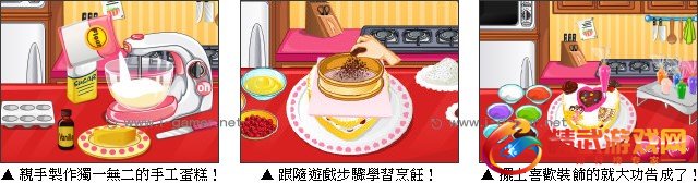 游戏操作:以滑鼠操作进行游戏,依据指示完成蛋糕。
