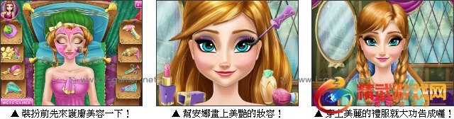 冰雪奇缘的安娜最近脸上肤质变的很糟糕,她尝试过各种方法却不见成效,为了可以恢复原有面貌,她决定去医院做护肤美容。首先依照指示帮安娜进行脸部的清洁,恢复白皙脸孔之后,依自己喜好来画上脸上妆容,最后搭配合适的礼服就完成啰!