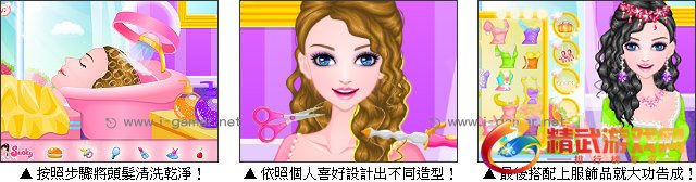 游戏操作:以滑鼠操作进行游戏,点击道具为女孩美发。