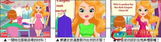 今天是个重要的日子,露娜准备要去参加舞会,可是她正烦恼着不知该穿什么衣服,于是来到一家服装设计店,却碰到遇上了一位让人发愁的设计师,究竟是否能顺利制作出漂亮的服装呢?现在就让我们一同来帮助露娜吧。这是一款装扮游戏,玩家在过程中要帮女孩收集足够的材料,才能让设计师进行制作衣服,最后换上服装就大功告成啰!