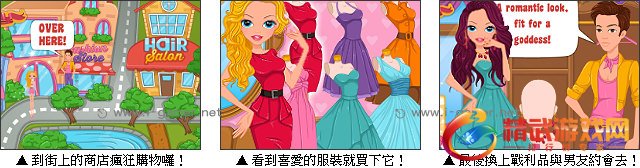 莎莉与心爱的男友来到了纽约曼哈顿,这里有许多琳瑯满目的商店,都会开始疯狂般的购买时髦衣服、鞋子...等,让人目不暇给,真是一个购物的天堂,热爱装扮的姊妹们一起进入游戏疯狂购物吧。游戏中依照指示进入商店里,玩家可以购买喜欢的服装、配件及饰品,最后将手上的战利品带回家打扮一下,就能成为曼哈顿的目光焦点啰!