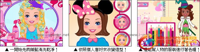 今天晚上宝贝芭比要去参加变装派对,必须要盛装打扮出席,所以从头到脚的装扮可就不能马虎,现在就来一起帮她变装成不同的造型吧。一开始玩家要帮芭比头发清洗乾净,再依照个人喜好来点选喜爱的造型,例如有小丑、医生、公主...等装扮提供选择,另外还可以替人物的服装进行着色喔。还在等什么,快一起帮芭比做出百变造型吧!