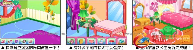 游戏操作:以滑鼠操作进行游戏,点选物品来布置童话公主房。