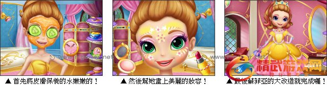 苏菲亚是一个人见人爱的小公主,为了要参加舞会决定把自己重新大改造一番,让大家能看到她最美丽的一面,现在就来帮她弄得漂漂亮亮吧。玩家要帮苏菲亚做脸部清洁保养、敷面膜等动作,让她恢复乾净肌肤之后,再依个人喜好来画上美丽妆容,最后搭配出合适的服饰品就完成啰!