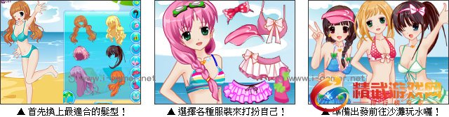 今天又是一个晴空万里的好日子。姐妹三人相约来到海边来度週末,快来帮助她们选择适合的发型,搭配各种清新亮丽的泳装,最后再戴上耳环、帽子等饰品打扮得漂漂亮亮,最后拍下美美的照片吧。发挥你的创造力帮沙滩姐妹花设计装扮,让她们在沙滩上成为大家的注目焦点!