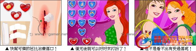 游戏操作:以滑鼠操作进行游戏,点击道具帮芭比治疗及打扮。