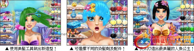 游戏操作:以滑鼠操作进行游戏,为人鱼公主理发打扮。