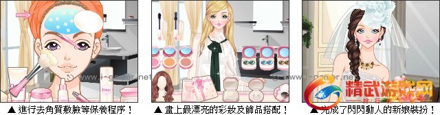 幸福的女孩即将与心上人举办一场冬季婚礼,在一片雪白的背景衬托下,女孩要成为最浪漫唯美的新娘子。为了这个重要的婚礼,必须从头到脚仔细打理,无论是敷脸、去角质、脸部彩妆及婚纱的搭配,都要漂漂亮亮的才行。快来帮她精心打扮一下,成为最完美的新娘子!