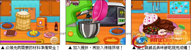 游戏操作:以滑鼠操作进行游戏,点击材料道具制作巧克力饼乾。