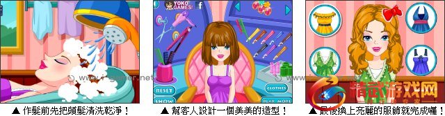 想要有拥有一个新造型吗?美发假期可以让妳从头到身体一起做造型喔。首先把头发清洗乾净,再利用画面中的工具来设计喜爱的造型,别忘了要搭配小饰品,最后再换上豔丽动人的服装就大功告成了。喜欢美发的女生朋友们,千万不要错过啰!