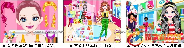 辣妹逛街是一款女生装扮游戏,游戏中的女主角想要买礼物送给妈妈,在出门逛街之前当然要先打扮的美美的。我们快来帮她好好打扮一下吧,画面右边选单可以挑选喜爱的发型,服饰、鞋子 ... 还有配件喔。喜欢装扮游戏的女生快来体验一下吧!