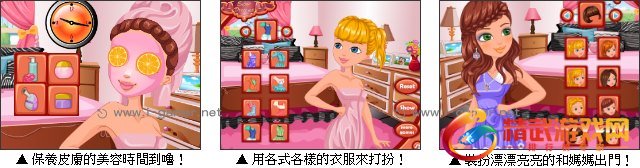 母亲节就要到了,对妈妈来说最好的礼物就是小孩永远陪在她身旁,赶快把自己打扮漂漂亮亮的,陪伴母亲出门逛街吧!游戏中依照步骤指示保养肌肤,然后选择各种服饰、化妆品来进行打扮,快点把自己弄得美美的送给母亲,祝妈妈母亲节快乐吧!