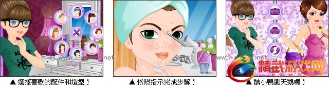 丑小鸭也可以变天鹅啦!这次是要将女孩脸上的痘痘和杂毛去除,一开始得经过清洁、蒸脸、敷面膜及保养等步骤,将女孩脸上的痘痘及杂毛除去,接下来再帮她梳妆打扮一下。丑女孩也能成为闪亮动人的漂亮女人唷,有没有很有成就感呢!